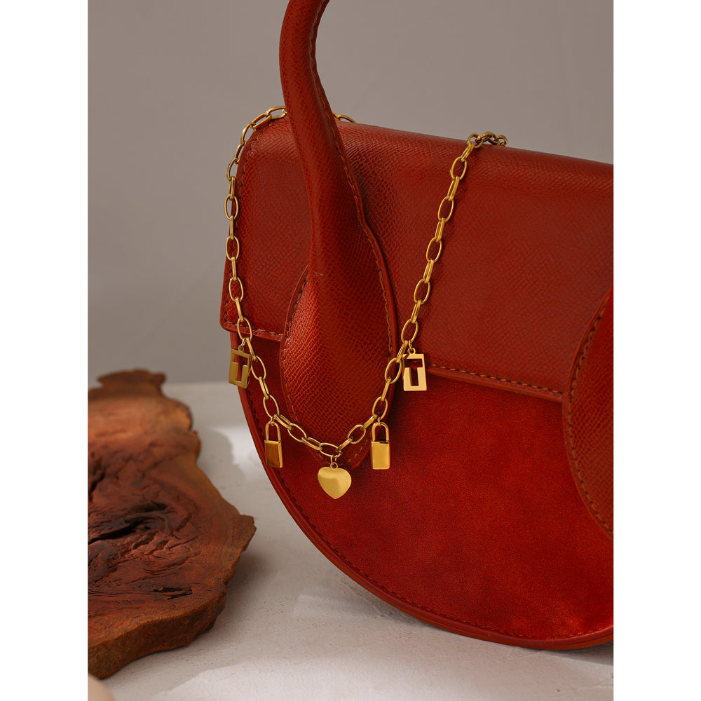 Shiny Jewellery Stylish Heart Lock Geometric Pendant Necklace for Women Stainless Steel