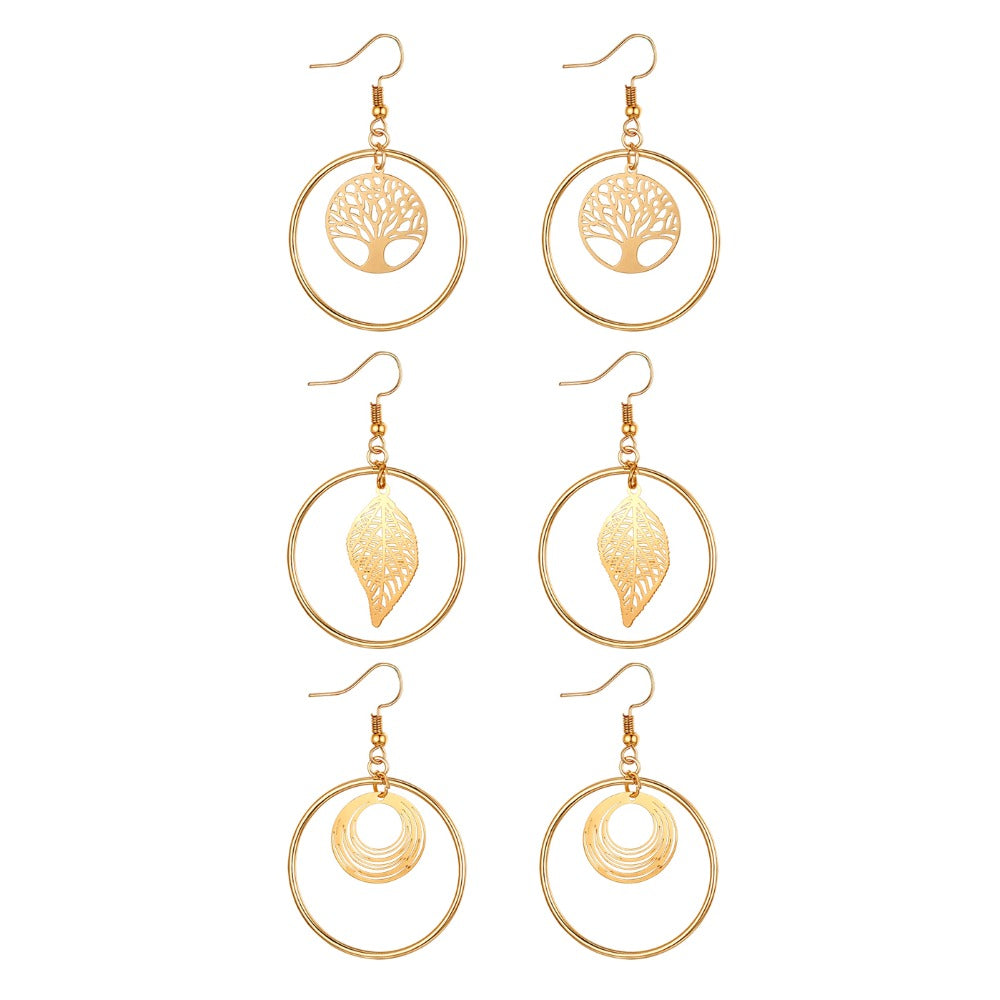 Shiny Jewellery Tree Of Life Earrings Hollow leaves Dangle Women Fashion Jewelry Gift Copper