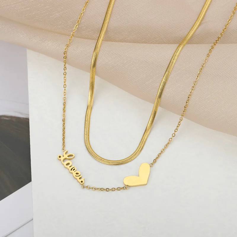 Shiny Jewellery 2 Layer Heart Shape Necklaces for Women stainless steel