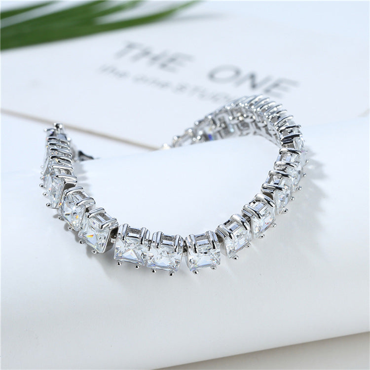 Shiny Jewellery White Square Crystal Bracelet for Women Silver Color Jewellery